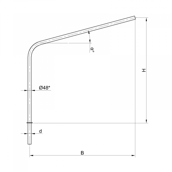 Однорожковые кронштейны К2-1,5-1,5-0-1 предназначен для крепления светильника на трубчатой опоре освещения. Завод опор освещения «Альдекс» изготавливает однорожковые консольные кронштейны из стального проката. Собственное производство позволяет выполнять изделия надлежащего качества и в кратчайшие сроки. Конструкция однорожковых кронштейнов К2-1,5-1,5-0-1. Конструкция консольных однорожковых кронштейнов К2-1,5-1,5-0-1 представляет собой гнутую металлическую трубу заданных размеров.