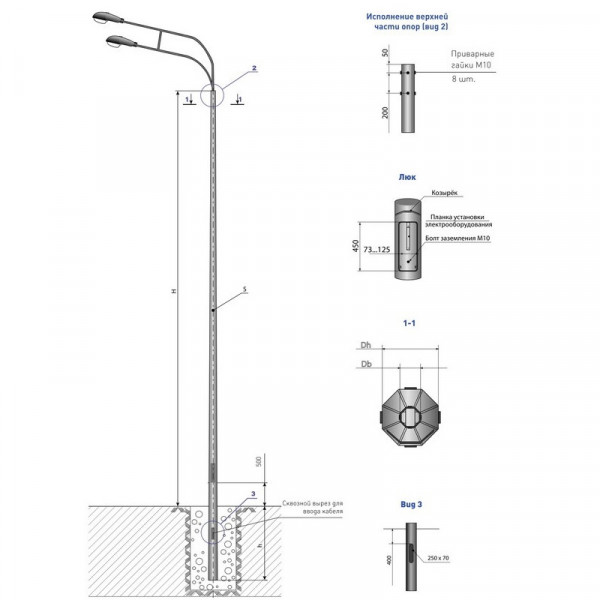 Опора освещения НПГ-6,0/7,25-02-ц, где: