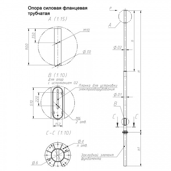 Установка опор СФ производится фланцевым методом с использованием закладного фундамента. Силовая фланцевая опора СФ имеет декоративное и антикоррозийное покрытие, соответствующее ГОСТ